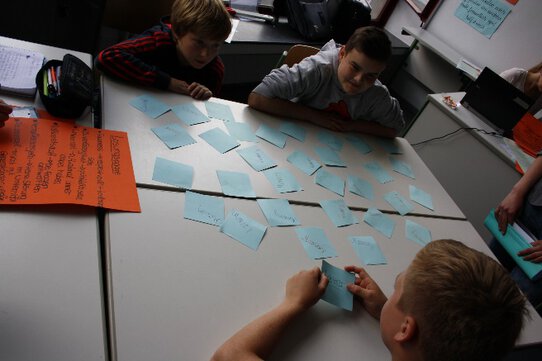 Die Schüler und Schülerinnen arbeiten sehr engagiert mit und sind mit sehr viel Kreativität dabei. Sie entwickeln Regeln spielerisch. Sie spielen zum Beispiel "Memory" mit unterschiedlichen Begriffen des Schulknigge. Außerdem wurden auch Spiele, wie "Kreuzworträtsel", "Tabu" und "Mensch ärgere dich nicht" mit neuen Regeln versehen.