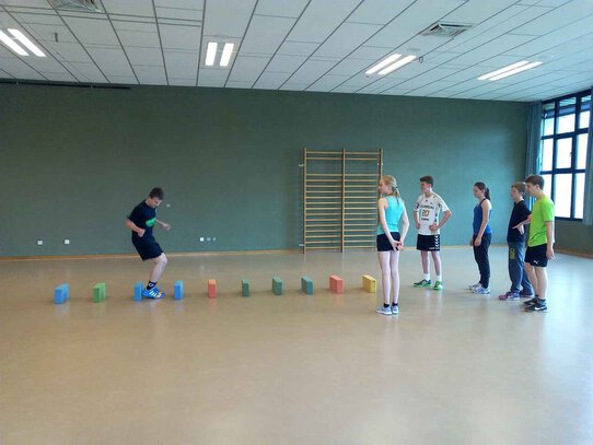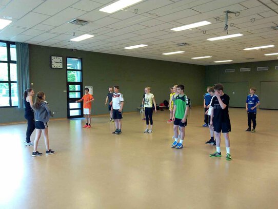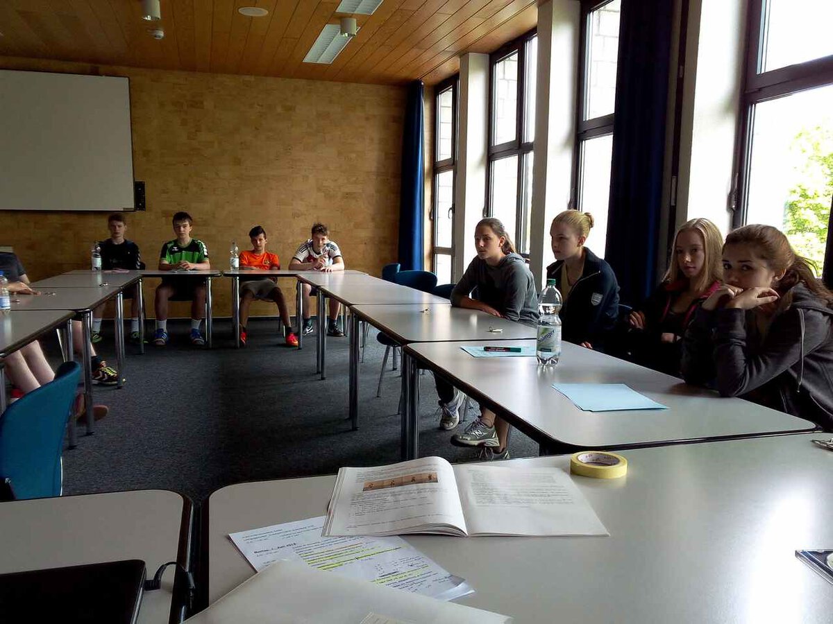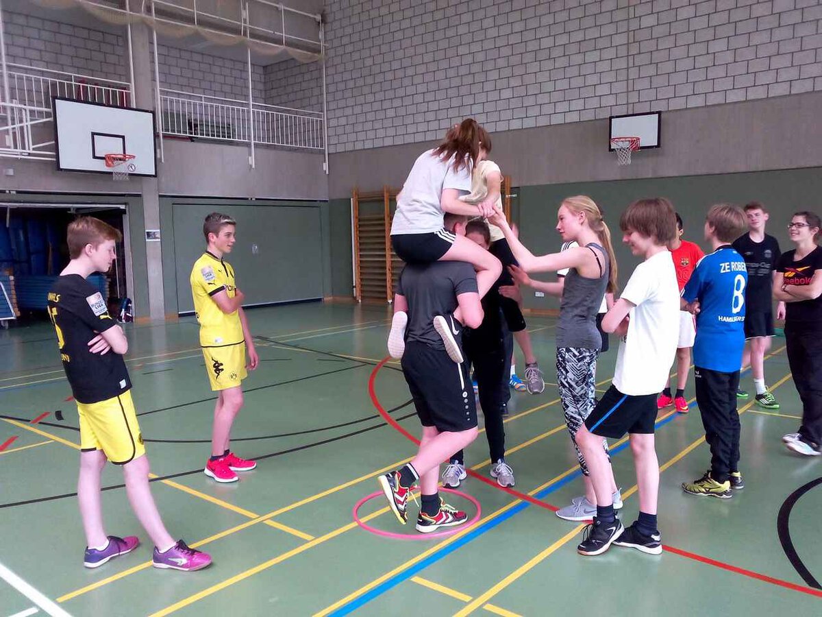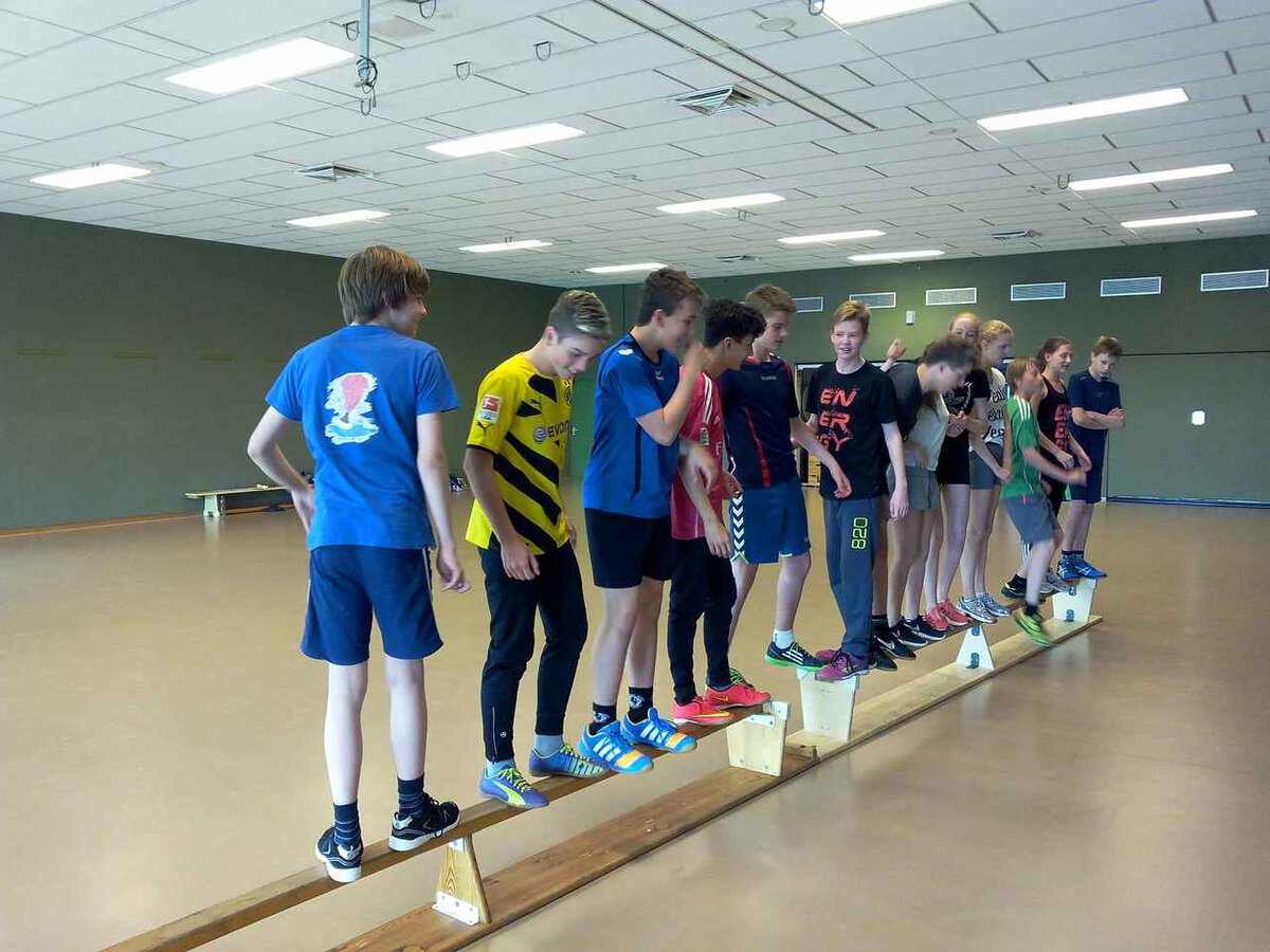 Am Montag, 1. Juni 2015 brachen 14 Schülerinnen und Schüler zusammen mit Frau Wolff, Herrn Kopp und Herrn Wollny morgens Richtung Sauerland auf. Ziel der Tour mit dem ÖPNV war die Willi-Weyer-Sportschule in Sundern-Hachen. In den folgenden beiden Tagen erhielten die Mädchen und Jungen des 8. Jahrgangs in zahlreichen Schulungseinheiten das Rüstzeug, um sich im kommenden Schuljahr als Sporthelfer zu engagieren.