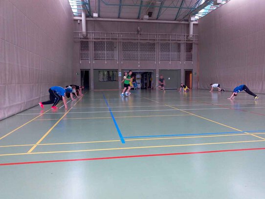 In den Einheiten, die am Ende ihrer Ausbildung stehen, lernten sie, wie Gruppen und Mannschaften eingeteilt, Übungen entwickelt und wie Gruppen zum Sporttreiben angeleitet werden. Dazu gehörte auch das Übernehmen von Spielleiter-Aufgaben. Zudem standen zahlreiche Kooperationsaktivitäten auf dem Plan. Geschlaucht von dem Programm, das von morgens bis abends stattfand, fuhr die Gruppe dann am Mittwochnachmittag wieder zurück nach Kamen.