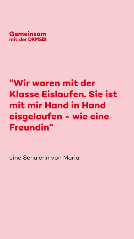 Für die meisten hier am SGK bist du „Frau Fischer", für alle anderen „Maria", aber für uns alle, die gesamte Schulgemeinschaft, bist du jemand, der weiterleben soll, den wir nicht missen möchten.