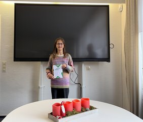 Letzten Montag, am 15. Dezember, war es dann so weit. Drei Klassensiegerinnen und ein Klassensieger traten in der Bibliothek gegeneinander an. Sie lasen vor einem kleinen Publikum, bestehend aus den besten Freundinnen und Freunden, und der Jury aus drei Lehrkräften der Deutsch-Fachschaft.
