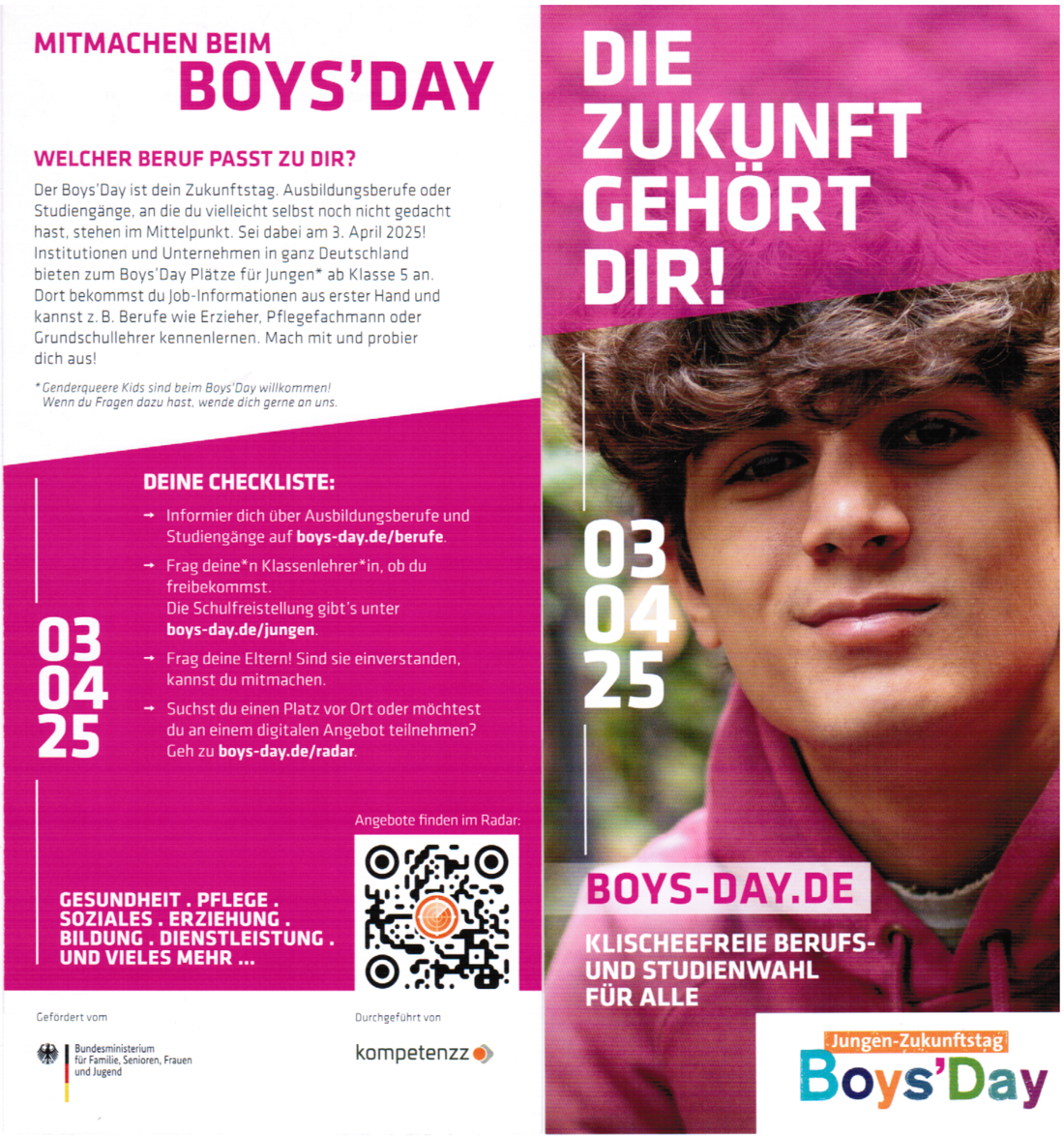 am Donnerstag, den 23.04.2026, findet der Boys´Day - Jungen-Zukunftstag statt.