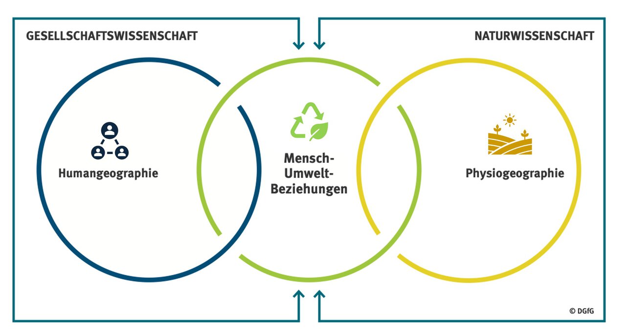 Geographie ist die Wissenschaft der Erde als Lebensraum des Menschen und seiner Wechselwirkungen mit der Umwelt. Sie untersucht Natur- und Kulturräume sowie deren Prozesse. Dabei verbindet sie natur- und gesellschaftswissenschaftliche Perspektiven, um ein umfassendes Verständnis von Lebensräumen, Landschaften und globalen Zusammenhängen zu schaffen. Zentrale Ziele des Faches Geographie sind die „Förderung der […] raumbezogenen Orientierungs- und Handlungskompetenz” (DGfG 2024, S. 9) zur aktiven Teilhabe an der Gesellschaft sowie die Entwicklung einer „integrative[n] und ganzheitliche[n] Denkweise" (ebd.), die auch ermöglicht, angeblich leichte Lösungsansätze kritisch zu hinterfragen. Geographie ist „ein Leitfach der Bildung für nachhaltige Entwicklung (BNE)" (ebd., S. 6), da sie die enge Verflechtung zwischen Mensch und Umwelt sichtbar macht und Wege für ein verantwortungsvolles Handeln aufzeigt.